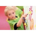 Chevalet de peinture double face. Livré avec une grande tablette à accessoires.Panneaux et piètement en mélaminé, traverses en contreplaqué.Pour 6 enfants.Dimensions : 123 x 200 x 70 cm.