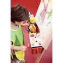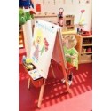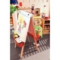 Chevalet de peinture. Livré avec 2 bacs pour supporter les pots de peinture.Pratique et peu encombrant, facile d''entretien.Panneaux en mélaminé et pieds en bois massif.Pour 2 enfants.Dimensions : 121 x 65 x 65 cm.