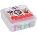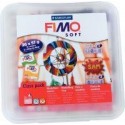 Atelier Fimo, 26 pains de 57 grammes de pâte à modeler Fimo Soft et 10 outils. Couleurs vives assorties : 3 rouge indien, 3 citron, 3 vert tropique, 3 blanc, 2 noir, 2 caramel, 2 framboise, 2 bleu pacifique, 2 menthe, 2 jaune tournesol et 2 mandarine. Contenu : 26 pains de 57G, 10 outils de modelage plastique et 4 cordons élastiques .La pâte Fimo est une pâte à modeler très malléable et facile à travailler par les enfants de plus de 8 ans.Lisse, souple, prêt à l''emploi. Pâte à modeler à cuire au four ménager à 110°C pendant 30 minutes.Idéale pour réaliser de magnifiques perles ou des bijoux fantaisie.Toutes les couleurs sont miscibles entre elles.Livré dans une boite hermétique en plastique.Atelier idéal pour les collectivités.