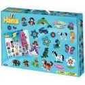 Valise collectivité, perles à repasser HAMA, taille midi, boite grand modèle. Environ 21 000 perles couleurs assorties. 21 plaques : 1 petite carrée, 1 petite hexagonale, 1 petite cœur, 1 princesse, 1 petite étoile, 1 cheval, 1 chien, 1 papillon, 1 fleur, 1 dauphin, 1 voiture, 1 hippocampe, 1 petit éléphant, 1 perroquet, 1 poney, 1 dinosaure, 1 petite grenouille, 1 petit pingouin, 1 petit chien, 1 petite fleur et 1 petite princesse. Avec 1 livret d''instructions et papier à repasser. Il s''agit d''une activité manuelle qui stimule la motricité fine, la manipulation et l''esprit de création. L''enfant réalise des motifs en perles HAMA sur les plaques. Il recouvre ensuite son motif de papier sulfurisé et demande à un adulte de repasser à l''aide d''un fer chaud. Le motif est soudé et il suffit de le détacher de la plaque qui est réutilisable. A partir de 5 ans.