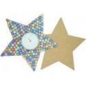 Atelier créatif de 12 bougeoirs en forme d''étoile à décorer. Atelier créatif permettant de réaliser des bougeoirs décoratifs en collant de la mosaïque. Contient: 12 étoiles en bois (14 x 14 cm), 12 bougies chauffe-plat, des mosaïques nacrées (5 x 5 mm) et des instructions. Facile à utiliser, l''enfant peut suivre les modèles proposés ou imaginer son propre motif. Atelier pour 12 enfants. Dès 3 ans.
