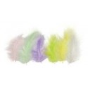 Sachet de 100 grammes de plume pastel assortis. Coloris : jaune, vert, violet, blanc, rose et bleu ciel. Dimension de 10 à 15 cm.