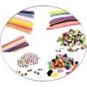 Pack économique chenilles, pompons et yeux mobiles coloris assortis. 100% polypropylène. 900 pièces au total > 100 Yeux mobiles adhésifs colorés avec cils, 300 Pompons couleurs assorties, 200 Pompons tricolores, 300 Chenilles couleurs assorties. Idéal pour la customisation de tout support feutrine ou coton !