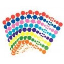 Pochette de 640 gommettes rondes adhésives assorties. 8 planches de 80 gommettes. 4 diamètres : 1.5, 2, 3 et 3.8 cm. 8 couleurs assorties par planche. Ludiques, éducatives et décoratives, colorées et variées, les gommettes adhésives permettent à l''enfant d''appréhender des univers de formes et de thèmes différents et de s''amuser en créant ses propres mises en situation.
