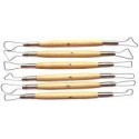 Lot de 6 mirettes à fil rond assorties. Acier inoxydable. Virole en laiton. Manche en bois verni. Double extrémité. Longueur : 15 cm.