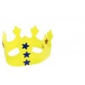 Lot de 10 couronnes à décorer + accessoires. Réalisées en mousse de caoutchouc. Livré avec 10 bandes velcro adhésives prédécoupées de 13 cm et 200 formes en mousse pailletée coloris assortis auto adhésives (100 étoiles et 100 ronds diamètre 8mm) à coller sur les couronnes pour les décorer. Coloris des couronnes : jaune.