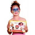 Palette de maquillage sans paraben. Contient : 1 palette de maquillage 6 couleurs assorties : rose, blanc, bleu claire, noir, jaune et rouge. Sans paraben, 1 tube de gel pailleté visage argenté 10ml, 1 pinceau, 1 éponge, 1 livret de modèles, 4 fiches pas à pas et 2 lots de pochoirs (fille et garçon).Maquillage non gras. Démaquillage facile à l''eau et au savon.