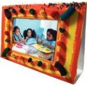 Lot de 24 cadres photo chevalet. Planches en carton blanc rigide, faciles à plier selon les pointillés pour former 24 cadres photo à personnaliser (colle nécessaire pour fixer le pliage). Emplacement pour photo 10 x 15 cm pré découpé. Peuvent être posés à l’horizontale ou à la verticale. Atelier pour un classe complète. Dimensions d’un cadre : 17,5 x 26,5 x ép.6,5 cm. Dès 4 ans.