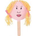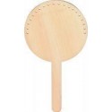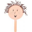 Lot de 15 supports en bois pour visages. En bois brut, avec un manche et des trous perforés. Les enfants décident selon leur imagination de représenter une fille ou un garçon. Appliquer d’abord une couche de couleur pour la peau, dessiner les traits d’un visage et ajouter des cheveux en laine. Atelier pour 15 enfants. Dimensions : Ø.12,5 x H.24 cm.