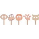 Lot de 10 masques en bois, les animaux de la savane. Grands masques en bois blanc épais, pré-dessinés aux contours colorés. A décorer avec des feutres ou de la peinture et à recouvrir de laines, de chenilles, de pompons ou de paillettes pour personnaliser de sympathiques animaux de la savane (2 x 5 modèles assortis) : lions, singes, hippopotames, girafes et léopards. Pas besoin d’élastique, l’enfant place facilement le masque devant son visage grâce à une large poignée de préhension. Développer la créativité des enfants qui pourront par la même occasion participer à des jeux de rôle et des petites scénettes. Dimensions moyennes des masques : L.22 x H.30 x ép.0,2 cm.