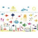 Kit de 4 affiches géantes format 70 x 100 cm thème la Mer + 48 planches de gommettes géométriques repositionnables. Le kit contient : 4 affiches 70x100cm, papier 150g/m_ impression noir, pour coller les gommettes, 48 feuilles de gommettes multicolores enlevables, formes assorties, 4 modèles couleur format A5. Thème adapté à la petite enfance : la mer. Plusieurs enfants peuvent travailler sur une même affiche, permet d''occuper 4 groupes