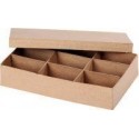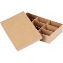 Boite de 9 compartiments en carton + couvercle. En carton brun. A décorer de peintures, de papiers Décopatch, de rubans adhésifs, de cabochons... Usages polyvalents pour y déposer de petites fournitures de poches ou de bureau, des bijoux, des friandises... Dimensions : L.19 x l.11 x H.4 cm.