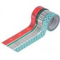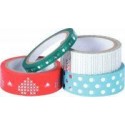 Lot de 4 rubans adhésifs métallisés argenté motifs fantaisies. Dimensions : 3 rouleaux 15 mm x 5 m et 1 rouleau 5 mm x 5 m.