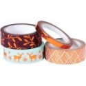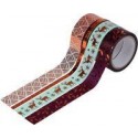 Lot de 4 rubans adhésifs métallisés argenté motifs cuivre assortis. Dimensions : 3 rouleaux 15 mm x 5 m et 1 rouleau 5 mm x 5 m.