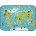 Tapis ULTRASOFT 150x100cm la carte du monde . Tapis ultra doux en microfibre avec dos en feutre et points antidérapants. Lavable en machine à 30°. Support pédagogique pour y découvrir les animaux du monde. Tapis livré avec une notice explicative indiquant le lieu et l’habitat de chaque animal illustré. Dimensions du tapis : 150x100cm
