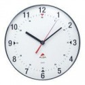 Horloge murale ronde diamètre 25cm. Munie d’une lentille en plastique ABS diamètre 25cm, de larges chiffres noirs sur fond blanc, d’un mécanisme à quartz haute précision et 3 aiguilles dont une trotteuse rouge. Hauteur des chiffres : 1.8cm. Poids 360g. Fonctionne avec 1 pile LR06/AA non fournie. Garantie 3 ans.