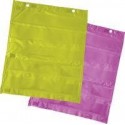 Sac de 4 pochettes en nylon magnétique assortis. Contenu du sachet : 4 grandes pochettes 42x35cm en nylon disposant de 2 ?illets et de plusieurs aimants afin d''être apposé au tableau. Sur sa hauteur, 5 bandes plastifiées permettant d?y glisser des cartes de jeux, des feuilles de papier découpé ou autres et de l''autre côté une bande plastifiée de 15cm et une de 8cm avec des velcros fermés. Couleurs : Bleu, Vert, Orange et Fuschsia.
