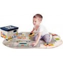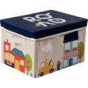 Boite de rangement / tapis de jeu 70x78cm. En Polyester, usage intérieur et extérieur. 2 usages pour ce bac de rangement : déplié, les enfants joueront sur le tapis pour ensuite y ranger petites voitures, figurines, etc… Facile à replié grâce aux scratchs, et facile à transporter grâce aux 2 poignées. Dimensions à plat : L.78xl.70cm Dimensions en boite : L.34xl.25xH.22cm