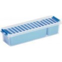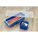 Boîte de rangement 2 compartiments amovibles 0,9 litres. Grâce à ses compartiments amovibles, cette boîte est idéale pour le rangement diverses petites affaires. Ce modèle est livré avec deux compartiment. Adapté pour le rangement de stylos, crayons, feutres etc. La plus petite peut être utilisée pour diverses petites affaires, par exemple pour des agrafes, trombones, gommes, rubans, perles, mais aussi pour le matériel nécessaire pour vos créations « do it yourself », comme des petites visses par exemple. La boîte est équipée d’un système de fermeture solide. Le couvercle de la boîte étant transparent, vous pouvez voir ce qu’elle contient d’un seul coup d’œil.