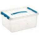 Boîte de rangement avec couvercle QLINE 15L 40x30x18. Boîte de rangement multifonction pour ranger divers produits à l''abri de l''humidité et de la poussière. Pratique, facile à empiler et équipée de clips bleus de fermeture solides pour que le couvercle reste bien en place. Transparente, vous pouvez voir ce qu''elle contient d''un seul coup d''œil.