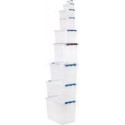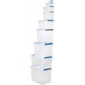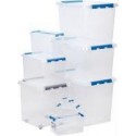 Boîte de rangement avec couvercle QLINE 52L 50x40x38. Boîte de rangement multifonction pour ranger divers produits à l''abri de l''humidité et de la poussière. Pratique, facile à empiler et équipée de clips bleus de fermeture solides pour que le couvercle reste bien en place. Transparente, vous pouvez voir ce qu''elle contient d''un seul coup d''œil.