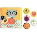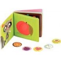 Le livre des odeurs. Petit livre de 6 pages plastifiées qui permet aux plus jeunes de découvrir le parfum de 5 fruits : la pêche, l’orange, la fraise, la pomme et le raisin. Une approche originale, sensorielle et fruitée : lorsque l’enfant frotte son doigt sur le fruit, une délicieuse odeur s’en dégage ! Livré avec 5 vignettes odorantes représentant la tranche des fruits : à frotter et à placer au bon endroit dans le livre à l’aide des scratchs. Pratique, une pochette est située au dos du livre pour ranger les vignettes. A chaque page, l’enfant développe son langage et son vocabulaire et entraine sa mémoire à reconnaitre les fruits, les couleurs et les odeurs. Relier l’odeur à l’image stimule la mémoire olfactive et facilite l’apprentissage. Lavable en surface avec un chiffon humide. Dimensions du livre : L.15 x l.15 x ép.3,5 cm. Diamètre des vignettes : 5 cm. Dès 12 mois.