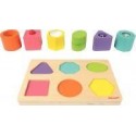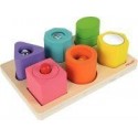 Encastrement de 6 cubes sensoriels en bois. Jeu sensoriel pour stimuler les sens des jeunes enfants. Chaque cube offre une forme, une couleur et une fonction différente : hochet, grelot, miroir, pouet pouet, kaléidoscope, bruitage… L''enfant identifie les formes et leur couleur afin de les ranger au bon endroit sur le plateau de rangement. Ce jeu d’éveil aide à développer la motricité fine tout en s''amusant . Forme des cubes ergonomique adaptée aux petites mains. Contenu : 1 plateau de rangement en bois (13x20 cm) et 6 cubes sensoriels en bois (ø 4.7x ht.4,4 cm Certifié FSC. Peinture à l''eau. Dès 12 mois.