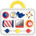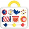 Tableau d''éveil AMBI TOYS. Centre d’activités tout plastique : tirer sur l’oiseau pour faire sonner la cloche, coulisser le miroir pour découvrir l’ours caché, tourner le gros bouton pour faire défiler le disque de couleurs, agiter le rouleau à billes et le boulier, appuyer sur le bouton siffleur. Développe la dextérité manuelle, la coordination visuelle et l''apprentissage du lien de cause à effet. Avec une poignée de transport. Dimensions: L. 23 x ép. 4,3 x H. 22 cm. Dès 6 mois.