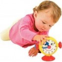 Mon premier réveil. Réveil ludique en plastique robuste et coloré. Les aiguilles se mettent à tourner au son du tic-tac et du carillon quand l''enfant tourne les 2 poignées. Les yeux du réveil tournent en rond pour amuser les petits. Participe à la découverte de la relation de cause à effet. Fonctionne sans pile. Dimensions du réveil : L.15,5 x H.13,5 cm (socle Ø 8 cm). Dès 10 mois.
