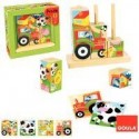 Puzzle abaque de 9 cubes en bois. La ferme. L''enfant assemble les 9 cubes jusqu''à reconstituer l''image du modèle. Permet de réaliser 4 puzzles différents en verticalité. L''enfant peut réaliser le puzzle à plat sur une table. Développe et stimule la dextérité et la capacité à associer des concepts. Dimensions du socle: L. 16,5 x l. 6,5 x H. 1,5 cm. Côté d''un cube: 4,5 cm. Hauteur totale socle + cubes: 15 cm. Dès 3 ans.
