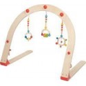 Portique d''activités en bois Arc-en-ciel. Joli portique en bois incliné avec 5 suspensions (non détachables). Autant d’activités visuelles, sonores et tactiles pour éveiller ses sens et sa motricité. La forme convient qu''elle que soit la position de bébé allongé ou assis dans un transat. A monter soi-même. Dimensions : L.67 x l.50 x H.57 cm Dès la naissance.