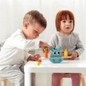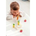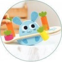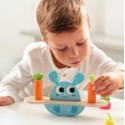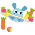 Jeu d''équilibre, le lapin à bascule. Jeu d’adresse qui se présente sous la forme d''un support en bois culbuto en forme de lapin et de 6 légumes en bois et feutrine. L''enfant lance le dé et place un légume de la couleur du dé sur le support à tour de rôle sans les faire tomber. Développe l’habileté manuelle et la concentration. Livré avec 1 dé et des instructions de jeu. Dimensions du lapin : L.23 x l.7 x H.12 cm. Dès 2 ans.