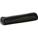 Fourre tout rond en cuir noir. Cuir naturel, 1 compartiment, fermé par zip, 4 x 17,5 x 4 cm.