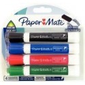 Blister de 4 marqueurs tableau blanc pointe biseautée assortis. Pointe moyenne biseautée 1 à 4 mm. Tracé 2 à 5 mm. Encre brillante à base d''alcool. Corps plastique.