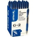Ecopack 20 stylos G2 bleu dont 4 offerts. Ecriture moyenne, pointe 0.7 mm. Tracé 0.4 mm. Bille en carbure de tungstène, encre gel. Doté d''un grip caoutchouté très confortable et d''un système de contrôle de débit de l''encre. Corps transparent fumé laissant voir le niveau d''encre. Rétractable et rechargeable.