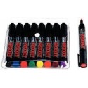 Pochette de 8 marqueurs pointe ogive couleurs assorties. Corps plastique. Marqueur encre à pigmentation à base d''eau.Ce marqueur à base d''eau est totalement inodore, utilisable sur pratiquement tous les supports y compris sur les films OHP. L''Uni Prockey est totalement résistant à l''eau une fois qu''il est sec. L''encre à pigmentation à base d''eau utilisée résiste également à la lumière.