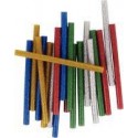 Box 20 recharges de colles pailletées pour le pistolet Cléo Gun 30903. 4 x 5 couleurs pailletées assorties : bleu, vert, rouge, or et argent. Longueur 10 cm. Diamètre 0,7 cm. Bâtonnets de peintures 3D instantanées. S''applique à l''aide du pistolet à colle Cléo Gun 30903. Séchage en quelques secondes. Permet de réaliser des décorations en 3D : cachetage, écriture, moulage, création d''objets en 3D... et permet de coller tous les supports : textile, bois, métal, verre...