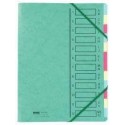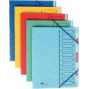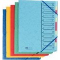 Trieur carte lustrée dos agrafé 12 compartiments. Couverture carte lustrée 425g, intérieur dossier multicolore avec onglets d’ouverture, dos agrafé (2 agrafes), élastique de fermeture, assortis à la couverture, en coins. Coloris de la couverture: bleu, rouge, vert, jaune. Format: 24 x 31,5 cm. Fabriqué en France avec du papier certifié PEFC.
