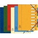 Trieur en carte lustrée à fenêtre découpées à 9 compartiments, fermeture par élastiques, 4 assortis
