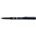 Roller tubulaire V5 noir. Ecriture fine, pointe aiguille 0.5 mm, tracé 0.3 mm. Encre liquide, niveau d''encre visible. Doté d''un régulateur d''encre. Clip métal sur le capuchon.