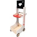 Chariot d’urgentiste en bois. Chariot en bois naturel, verni et laqué, équipé de défibrillateurs pour devenir un véritable médecin urgentiste ! L’enfant pourra mesurer l’état de santé de son patient grâce à 2 panneaux recto/verso à placer au sommet du chariot : fiche d’enregistrement, cardiogramme, courbe de température et test de vue. Avec un compartiment de rangement, un plateau, une poignée et 4 roulettes bordées de caoutchouc pour le transporter partout. A monter soi-même. Dimensions du chariot : L.28 x l.35 x H.74 cm. Dimensions d’un panneau : L.27 x l.20 cm. Dès 3 ans.