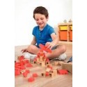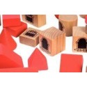 Château à construire, 100 pièces. Boite de 100 blocs de construction en bois naturel et rouge certifié FSC. L’enfant pose simplement les pièces les unes sur les autres pour bâtir son propre château fait de donjons, de tours, d’escaliers et de chemins de ronde ! Pour plus de réalisme, certains blocs sont décorés de fenêtres et de portes. Développe la dextérité et la créativité des enfants qui découvrent par le jeu les notions de formes, de tailles, d’équilibre et de symétrie. A construire, détruire et reconstruire à l’infini. Côté d’un cube : 3 cm. Dimensions du plus grand chemin de ronde : L.9 x l.9 x ép.2 cm. Dès 3 ans.