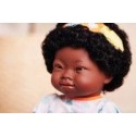 Poupée fille africaine 38 cm, porteur de Trisomie 21. Poupée très réaliste avec les caractéristiques physiques des enfants porteurs de Trisomie 21. Modèle sexué en vinyle souple, avec cheveux et sans vêtement. Membres articulés. Ces poupées sont de vrais supports pédagogiques qui permettent une meilleure intégration et l’acceptation des enfants porteurs de Trisomie 21 dans les classes. Dès 10 mois.