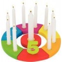 Couronne d''anniversaire 10 bougies. Jolie couronne d’anniversaire pour souffler ses bougies à l’école ! Contient un socle en bois, aux couleurs de l’arc en ciel constitué 7 pièces à assembler et 10 blocs chiffres en bois de 1 à 10 interchangeables à positionner sur la couronne. Bougies vendues séparemment code 12143. Dimensions de la couronne : Ø 21 cm, ép. 1,5 cm. Dès 3 ans.
