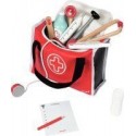 Mallette du docteur + 10 accessoires en bois. Toute la panoplie nécessaire pour jouer au docteur et soigner les petits bobos ! Mallette en PVC avec une fermeture éclair, 2 poignées en tissu et 10 accessoires en bois massif : une seringue à ressort (L. 16 cm), un marteau pour les réflexes (L. 12,5 cm), une bouteille de désinfectant (Ø 5 cm, H. 9 cm), un stéthoscope, un otoscope avec une loupe, un thermomètre (L. 13 cm), une languette (L. 13 cm), un bloc d''ordonnances en papier (30 pages), un crayon et un rouleau de bandage. Dimensions de la mallette : L. 24 x l. 8 x H. 17 cm. Dès 3 ans.