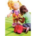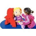 Maxi poupée d''apprentissage Lola. Très grande poupée en tissu pour développer la motricité fine, apprendre à s’habiller et se déshabiller. A la fois légère et moelleuse, elle permet de développer l’affectif. Équipée de plusieurs systèmes de fermeture : pression, bouton, zip, velcro, lacet, différentes sortes de boucles qui favorisent l’apprentissage des gestes de la vie quotidienne. Lola porte une robe, un gilet à bretelles et une cape. Lavable en machine, cycle délicat à 30°C. Hauteur de la poupée : 70 cm. Dès 2 ans.
