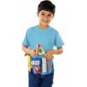 Ceinture du bricoleur + accessoires 14 pièces. Ceinture auto agrippante ajustable livrée avec l’outillage indispensable du petit bricoleur: 1 marteau, 1 tournevis, 1 clé à molette, 1 règle, 1 scie, 3 blocs de construction, 2 vis, 2 écrous et 1 clou. Ceinture avec poches et attaches de rangement, outillage en bois coloré et vernis. Scier les blocs de construction auto-adhésifs et utiliser l’outillage pour les ré assembler! Avec une étiquette personnalisable et réutilisable. Développe la motricité fine et le jeu imaginatif. Dimensions du marteau: L. 7 x l.3 x H. 15 cm. Dimensions de la ceinture: L. 69 cm, Hauteur 15 cm. Dès 3 ans.