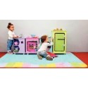 Cuisinière en bois rose. La structure comprend 1 bloc de cuisson avec 3 plaques, 1 four avec de gros boutons en forme de fleurs. La porte du four est anti pince doigts. Réalisé en contreplaqué de bouleau naturel et laqué aux couleurs vives. Livré monté, juste les 4 pieds à fixer par vis. Ce meuble s''associe parfaitement avec le meuble évier (23237), le bloc lingerie (23238), le réfrigérateur (23239) et la table (23240), dos à dos ou tout en longueur. Hauteur du plan de travail : 47 cm. Dimensions : 37 x 37 x 47 cm. Dès 10 mois.