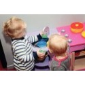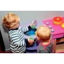 Meuble évier en bois violet. La structure comprend 1 évier, 1 robinet, 2 gros boutons en forme de fleurs et 1 espace rangement (2 compartiments). Réalisé en contreplaqué de bouleau naturel et laqué aux couleurs vives. Livré monté. Ce meuble s''associe parfaitement avec la cuisinière (23236), le bloc lingerie (23238), le réfrigérateur (23239) et la table (23240), dos à dos ou tout en longueur. Hauteur du plan de travail : 47 cm. Dimensions : 37 x 37 x 47 cm. Dès 10 mois.