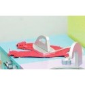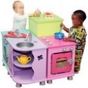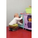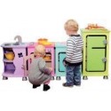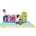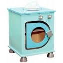 Bloc lingerie en bois bleu . La structure comprend 1 lave linge, 1 table à repasser avec son fer et des gros boutons en forme de fleurs. La porte du lave linge est anti pince doigts. Réalisé en contreplaqué de bouleau naturel et laqué aux couleurs vives. Livré monté, juste les 4 pieds et le fer à monter, à fixer par vis. Ce meuble s''associe parfaitement avec la cuisinière (23236), le meuble évier (23237), le réfrigérateur (23239) et la table (23240), dos à dos ou tout en longueur. Hauteur du plan de travail : 47 cm. Dimensions : 37 x 37 x 47 cm. Dès 10 mois.